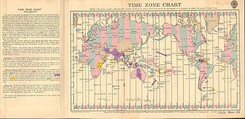 Since the 1920s, a nautical standard time system has been in operation for ships on the high seas. As an ideal form of the terrestrial time zone system, nautical time zones consist of gores of 15° offset from GMT by a whole number of hours. A nautical date line follows the 180th meridian, bisecting one 15° gore into two 7.5° gores that differ from GMT by ±12 hours.[31][32][33]